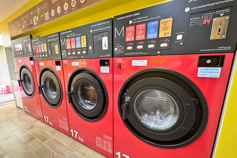 洗濯機の使い方も簡単です。10バーツコインを入れるだけです。店内に両替機もあるのでコインをあらかじめ用意していなくても大丈夫でした。また、洗剤等は自動投入のようで、こちらも自分で用意しておく必要はありません。無茶苦茶楽です。
