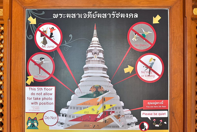 また、露出が多い服装も避けるようにしてください。仏塔の中は静かにお参りしてください。