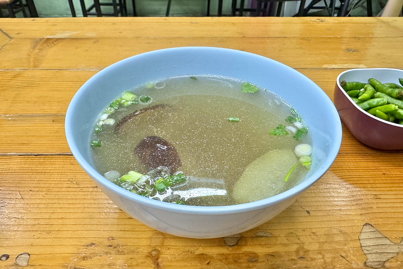 これが結構大きなどんぶりだったのです。椎茸、ダイコンなどの具が入っています。この半分のサイズでもいいとは思ったのですが、優しい味ですごく美味しい。最終的に全部飲んじゃいました。