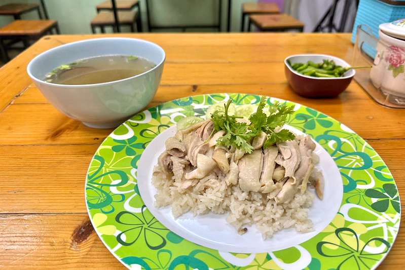 店頭のショーケースを見た限りでは、蒸し鶏と揚げ鶏がありそうでしたが、どんなオーダーが通ったのかはわかりません。そして料金もこの時点ではわかりませんでした。