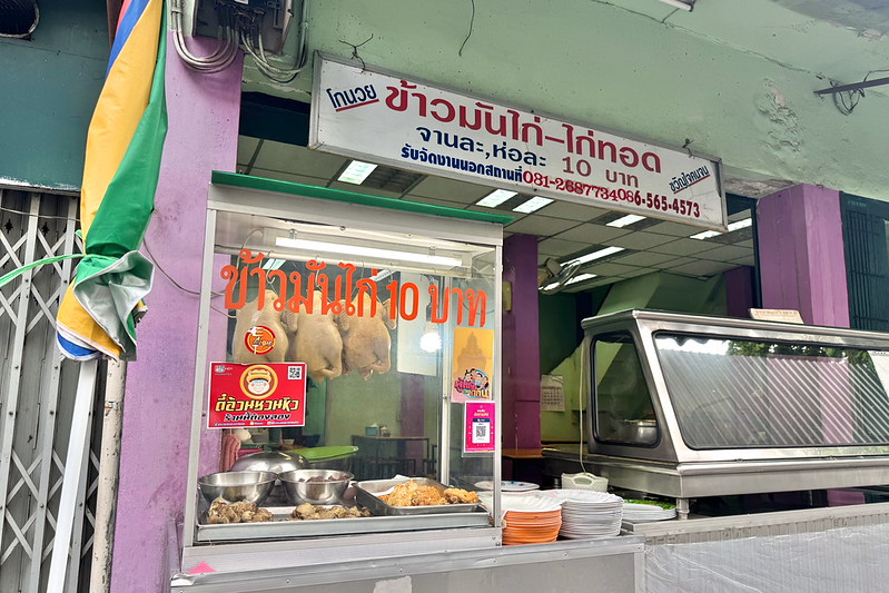 バンコクのBTS サパンタクシン駅のすぐ近くに宿泊しました。安宿だったので自力で朝飯をなんとかしないといけません。ぶらぶらと歩きながらピンとくるお店を探していたら、ありました。お店の方が「カオマンガイ」と声をかけてきて、すぐにその場でGoogleマップの評価を確認したらなかなかいいではないですか。というわけで「カオマンガイ ゴールアイ」で朝飯を食べてみることにしました。とてもクセが強いお店です。