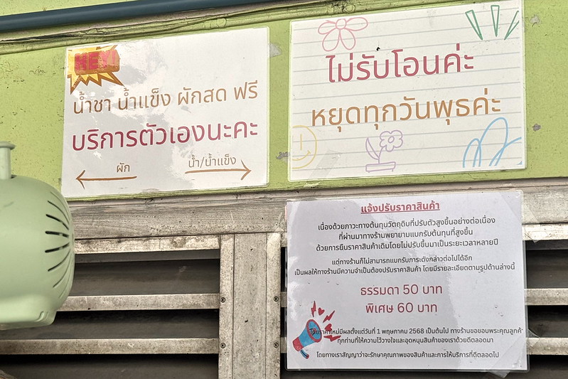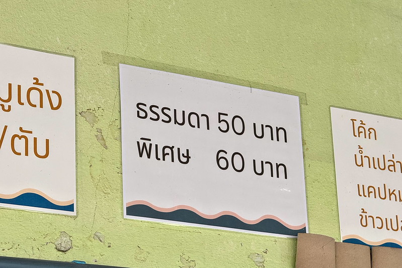 おそらく普通盛りが50バーツ、大盛りが60バーツなのだと思います。