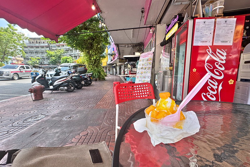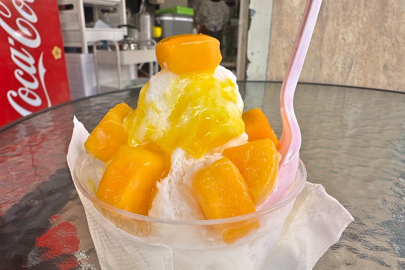 氷はふわふわでした。そこに一口サイズのマンゴーがいくつかのっていて、さらにマンゴーソースもかかっていました。これ、無茶苦茶美味いです。冷たくて、甘くて、マンゴーも柔らかで、最初から最後までずっと美味しく食べることができました。暑くて汗をかきながら冷たいものを食べるのは幸せを感じさせてくれます。