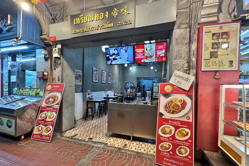 バンコクの中華街では夜飯を食べる場所を探すのに毎回迷っています。この日は歩いて歩いてようやくร้านเหรียญทอง เจริญกรุง 23 (Golden Coin Charoen Krung)という店に入ることにしました。店頭にあったメニュー表に記載されているラートナーがものすごく美味しそうだったのですよ。