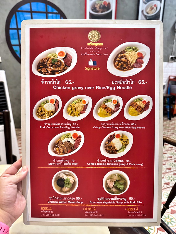 この中にあるSignatureマークがついているChiken gravy over Riceにしてみました。麺と迷ったけどご飯で。65バーツ(訪問時のレートで約299円)。