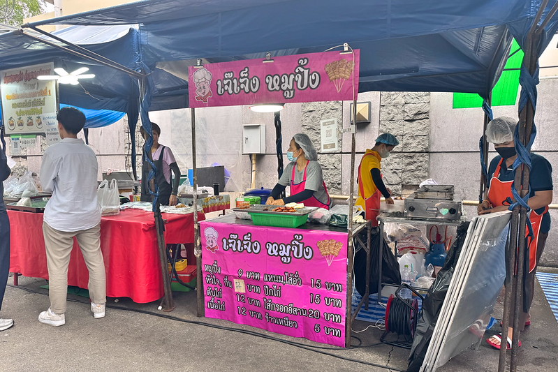 Asok Montri通りから大学内に入ってすぐです。Googleマップ上にはSWU Nightmarketと出ており、昼間の火タラ、木タラだけでなく金曜日の夜にはナイトマーケットも開催されるそうです。