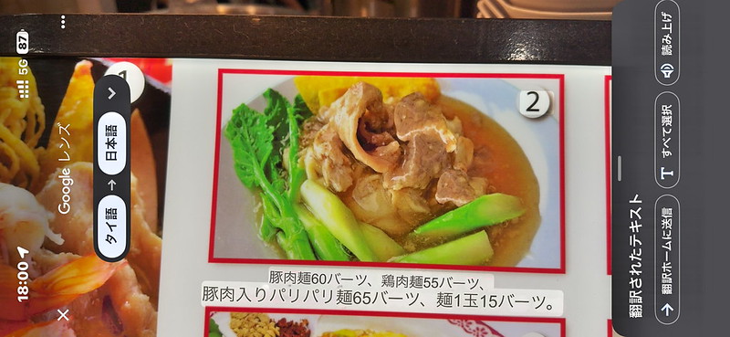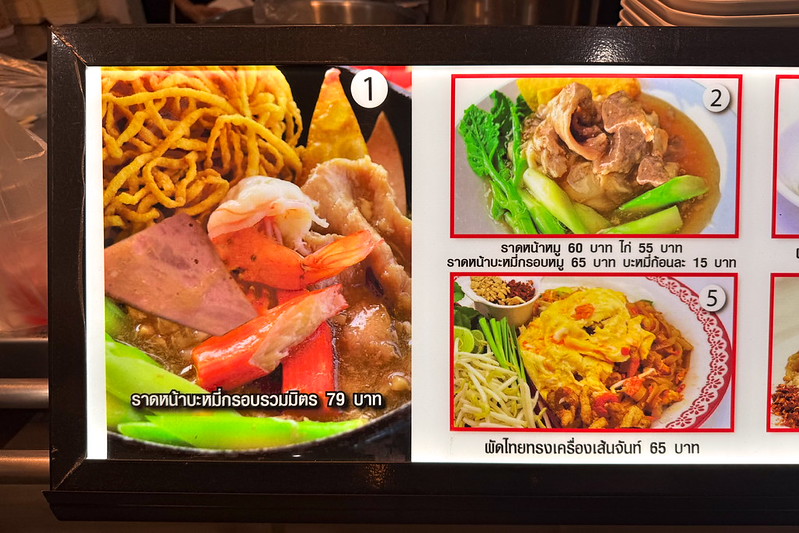 この2番のものを注文してみました。翻訳では豚肉入りパリパリ麺で、65バーツ(訪問時のレートで299円)。おそらくラートナーでしょう。