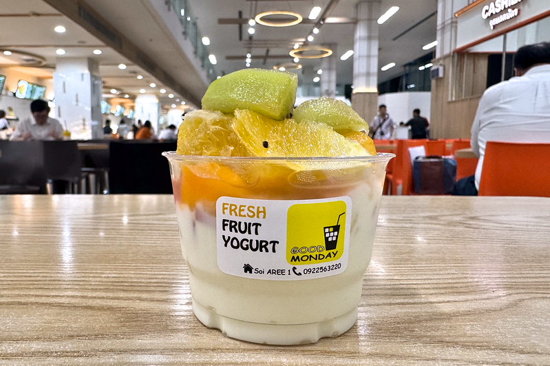 ミックスフルーツヨーグルト、45バーツ(約207円)。こちらは安定の美味しさです。タイ感はないけど。